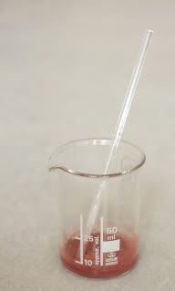 add the pink clay in the rose hydrosol and stir with the glass rod. don't worry if the clay does not dissolve completely.